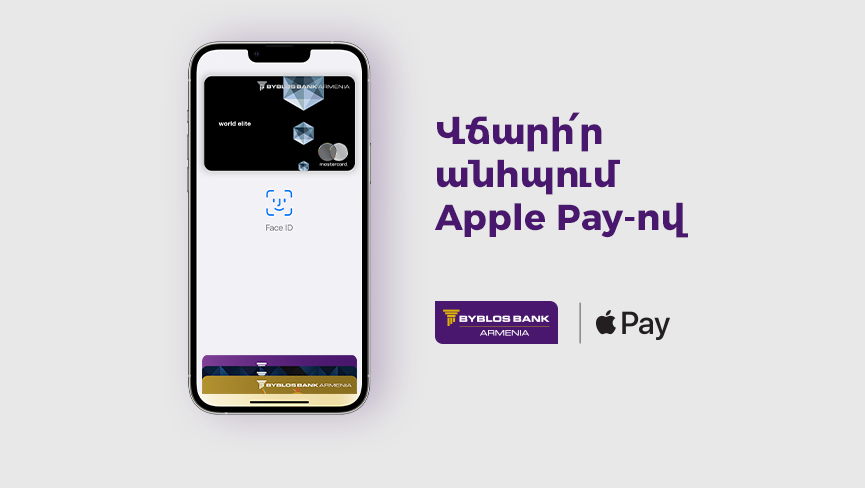 Բիբլոս Բանկ Արմենիայի Mastercard քարտերի առավելություններն այժմ հասանելի են Apple Pay-ով ապահով ու արագ վճարումներ կատարելիս: Համակարգը ոչ միայն խանութներում, այլև կայքերում ու հավելվածներում գնումներ անելու հարմար և պաշտպանված միջոց է։