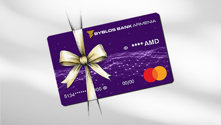 Յուրաքանչյուր անձ, ով առցանց կգրանցվի Byblos Mobile-ում և կդառնա Բանկի հաճախորդ, կկարողանա պատվիրել իր առաջին թվային Mastercard-ը անվճար։
