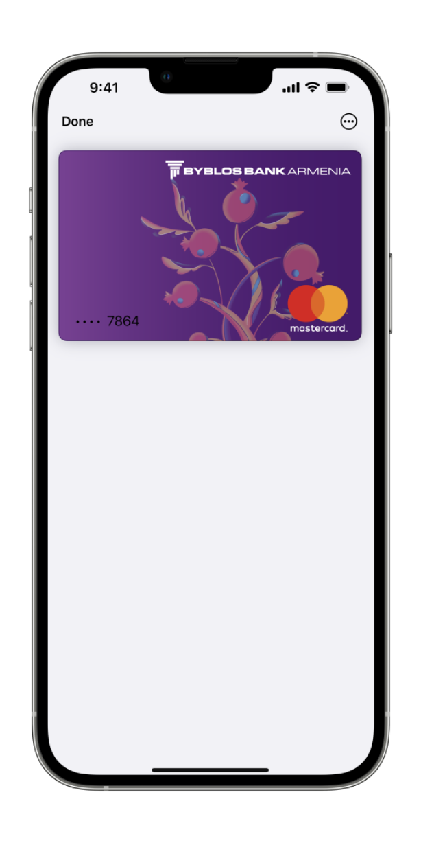 Բիբլոս Բանկ Արմենիայի Mastercard քարտերի առավելություններն այժմ հասանելի են Apple Pay-ով ապահով ու արագ վճարումներ կատարելիս: Համակարգը ոչ միայն խանութներում, այլև կայքերում ու հավելվածներում գնումներ անելու հարմար և պաշտպանված միջոց է։